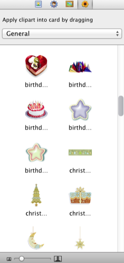 in the upper left to open the Clipart thumbnail panel. Drag and drop a clipart to add it into the card.