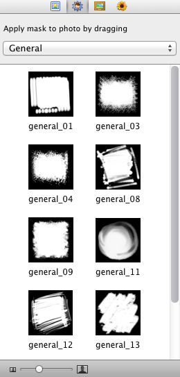 The masks are arranged into three categories: Circle,General, and Rectangle. Scroll down and preview all masks in the Mask thumbnail panel.