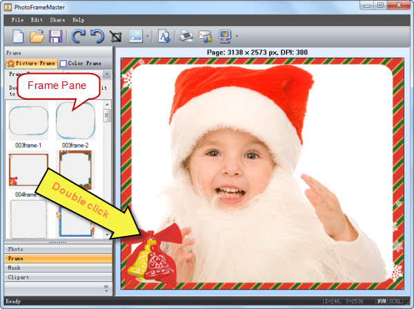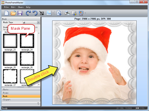 The program includes both color and picture frames that are provided such as cartoon, general and classic. There is also a great variety of masks that are available to make your photo in different shape as well. The clipart diversity enables the user to make lots of funny pictures. To apply frames, masks and clip-arts, double-click the one you want to add, and it will instantly be applied to your photo.