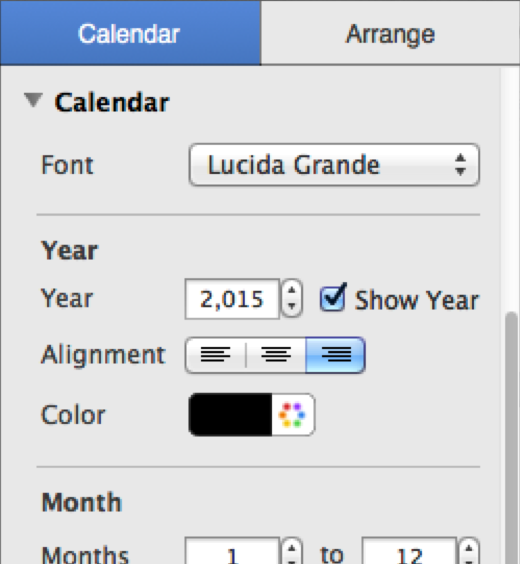 Set month Count, Space, Alignment and Color, etc. on the Month inspector.