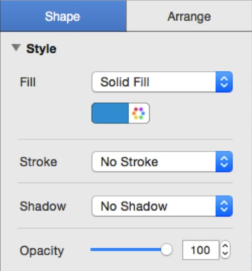 Free to customize shape Fill, Stroke, Shadow and Opacity on Shape panel.