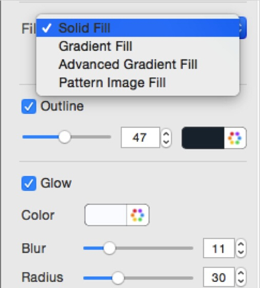 Choose Fill type for your text – Solid Fill, Gradient Fill, Advanced Gradient Fill and Pattern Image Fill.