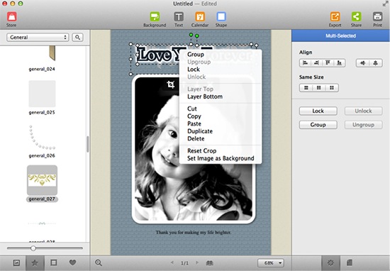 Select multiple objects and then click Group tab on Multi-Selected panel to group them and edit as a whole.