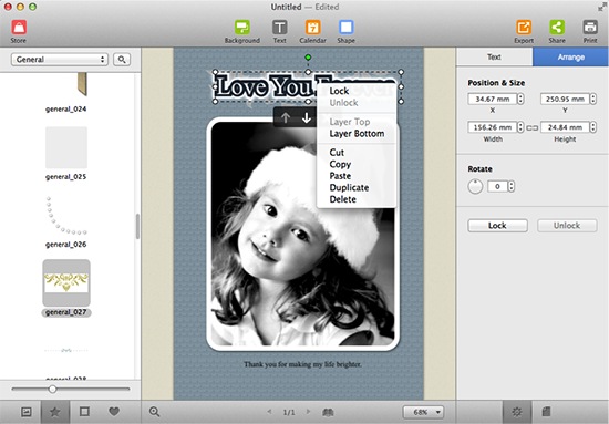 Select any object and then right click to choose Lock to fix the object in any particular place on the collage.