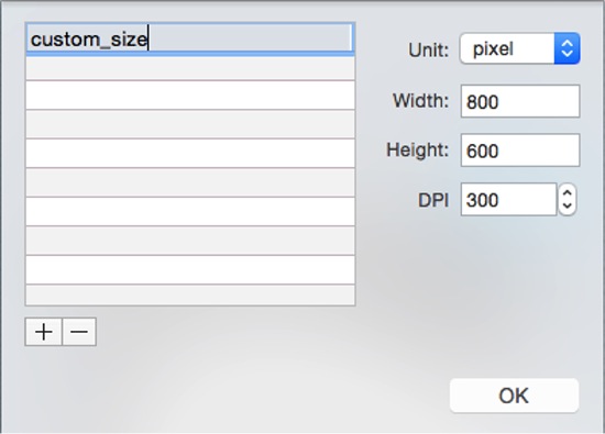 button to add custom sizes, and Picture Collage Maker 3.5.0 for Mac will save the sizes you set. Next time you can choose your customized sizes in Page Size combo box directly.