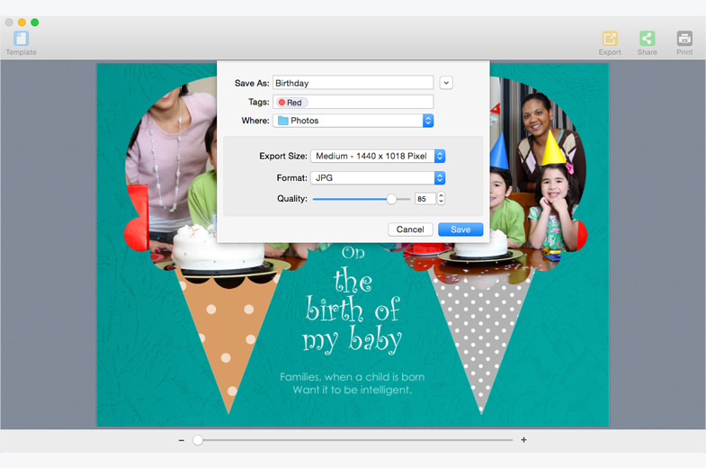 A super easy poster maker that enables even the most casual users to create everything from photo collages to posters to greeting cards instantly without any effort.