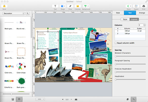 Click the Clipart button to show the clipart list. Drag & Drop a clipart to add it on the brochure page. If you don’t find clipart that you want, you can also search your desired one on the Internet inside the app.