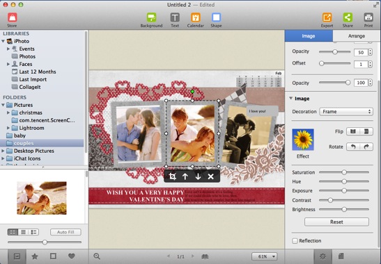 Once you’ve chose the greeting card template you need, start to add your own photos to fill all the frames on the template. You are given easy access to iPhoto, Aperture and local folders on your Mac. Also, you can directly drag and drop any folder under FOLDERS on the left.