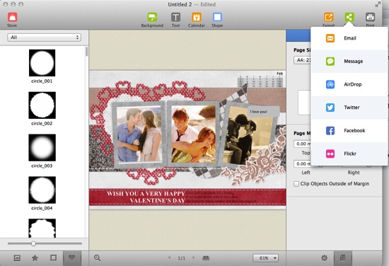 When you are satisfied with your greeting card you can choose to Print or Share it. When it comes to print your custom greeting card, don't forget that you have option to have a final preview and make some print settings. If you choose Share, you have wide choices to share via popular social networks.