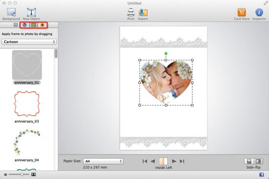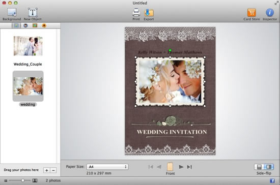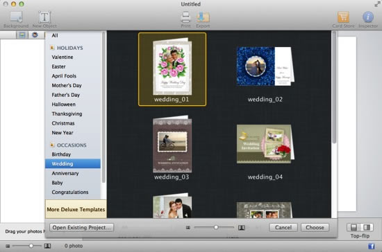 Launch Greeting Box on your Mac and you will see various templates for almost all holidays and occasions. Click Wedding under Occasions category, here a collection of wedding invitation templates are available to help you create romantic photo wedding invitations for your guests.