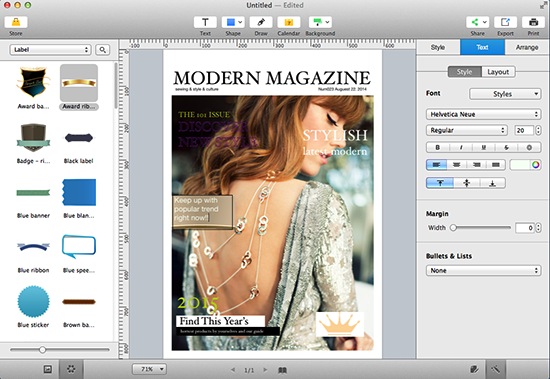 Once you’ve customized the magazine template yours, you can go to the upper right corner and click Export button to save your design as desired image format for later use. Also, you have options to directly print or simply share the magazine cover online via Email, Facebook, etc. Do whatever you want.