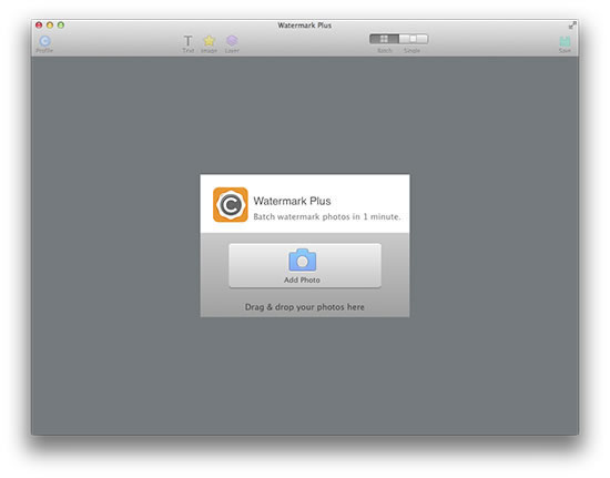 Open Watermark Plus and you will see a window for adding photos. Here you can simply click Add Photo button at the center of the screen to add as many photos as you want. Alternatively, you have the quick option to easily drag and drop your photos to the watermark maker.