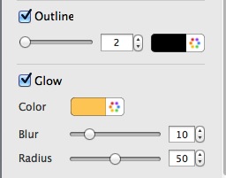 Apply outline and glow effects to text by checking the Outline and Glow box.