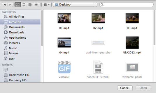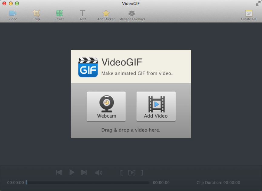 Open VideoGIF and a start panel appears as below.