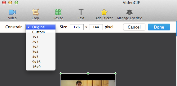 to crop the GIF in order to display better. You can choose to crop by ratios, click Custom to enter exact pixel, or just drag the handles to crop it manually.