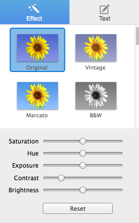 Click Reset to clear all settings of filter/effect, Saturation, Hue, Exposure and Contrast, etc.