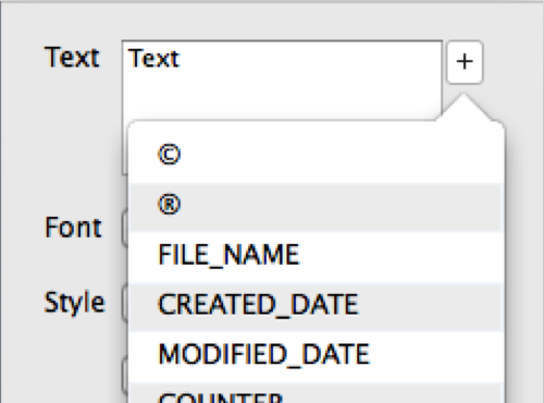 button near the Text input box to add info stamp for text, such as Created Date, EXIF info, etc.