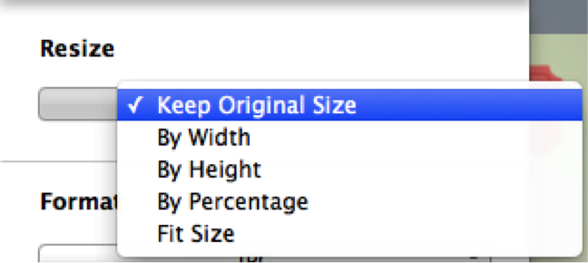 Batch Resize Your PhotosClick Resize combo box to resize your photos by Width, Height, Percentage, or Fit Size.