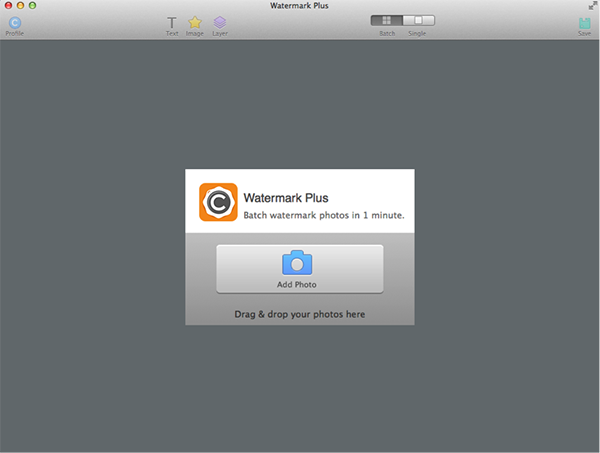 Click Add Photo to import the photos you need to watermark. You can also drag and drop your photos to Watermark Plus directly.